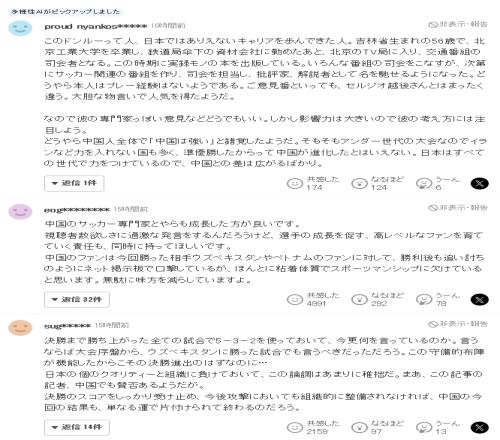 部分日本球迷评论截图